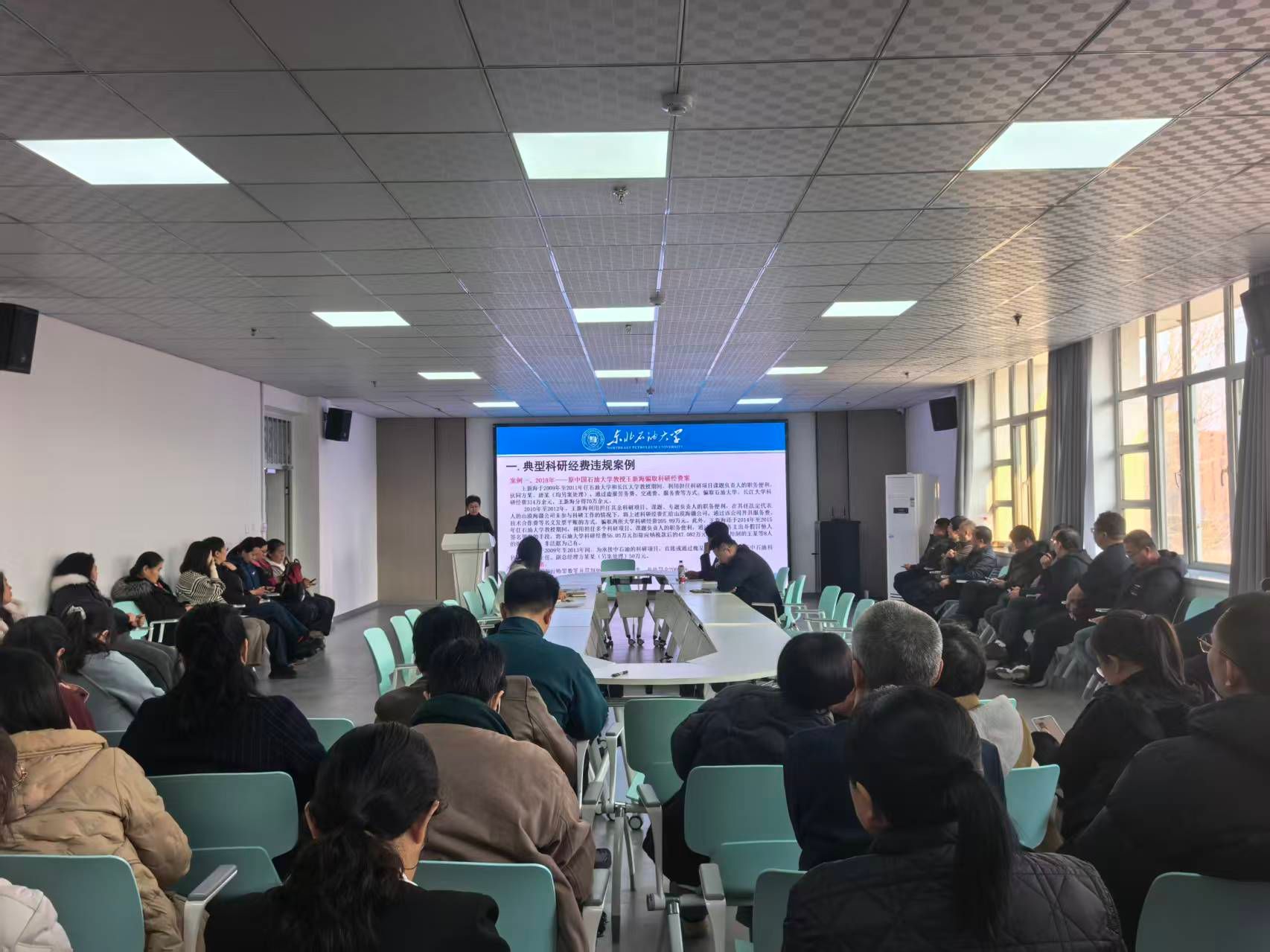 3 月 20 日,学院举办科研经费警示宣传教育大会,全体教职工参会,会议聚焦科研经费管理关键环节,以 “以案明纪、以规促管” 为主题,学院党委副书记胡畔围绕8个科研经费使用典型案例开展深度剖析,副院长张强对照学校纵向、横向科研经费管理办法逐条解读。与会人员认真学习、深入对照,进一步强化合规意识、责任意识与廉洁意识,切实把制度要求转化为日常行为准则。