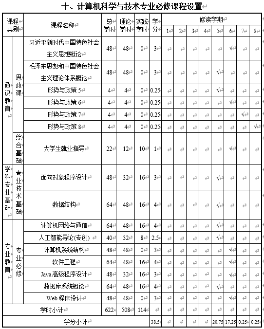 九、计算机科学与技术专业学分统计表
