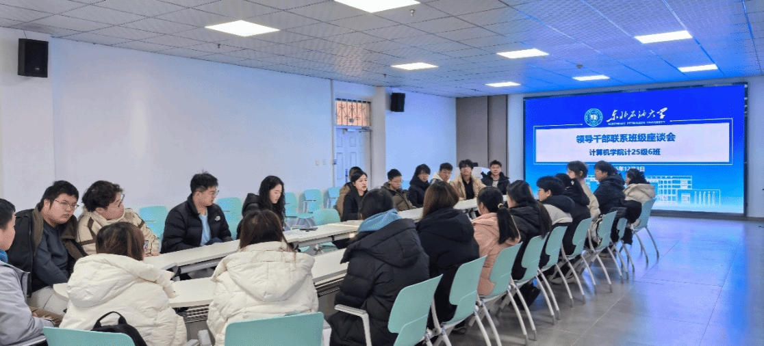 为落实领导干部深入基层联系学生工作机制,推进育人力量下沉一线,2025年12月3日,党委书记任艳秋深入联系班级参加主题班会,并组织班级学生座谈会。党委副书记胡畔、计算机25级6班师生参加了座谈会。
