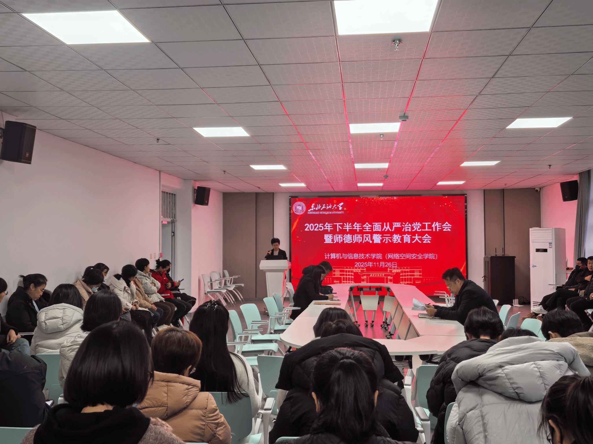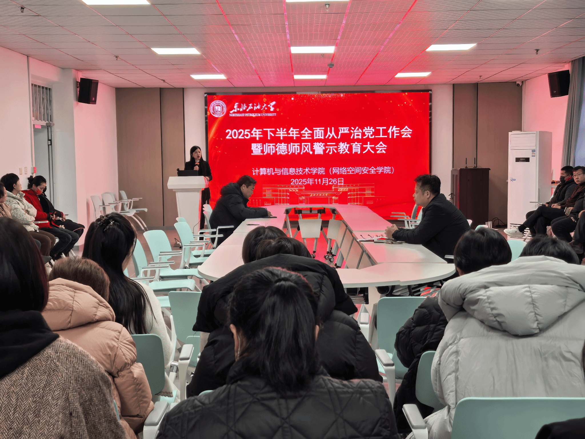 为深入贯彻落实党中央关于全面从严治党要求,筑牢教职工思想防线,扎实开展师德师风教育,2025年11月26日,计算机与信息技术学院(网络空间安全学院)在第一教学楼D座305会议室召开2025年下半年全面从严治党工作会暨师德师风警示教育大会。会议由学院党委书记任艳秋主持,学院领导班子成员、全体教职工参加会议。